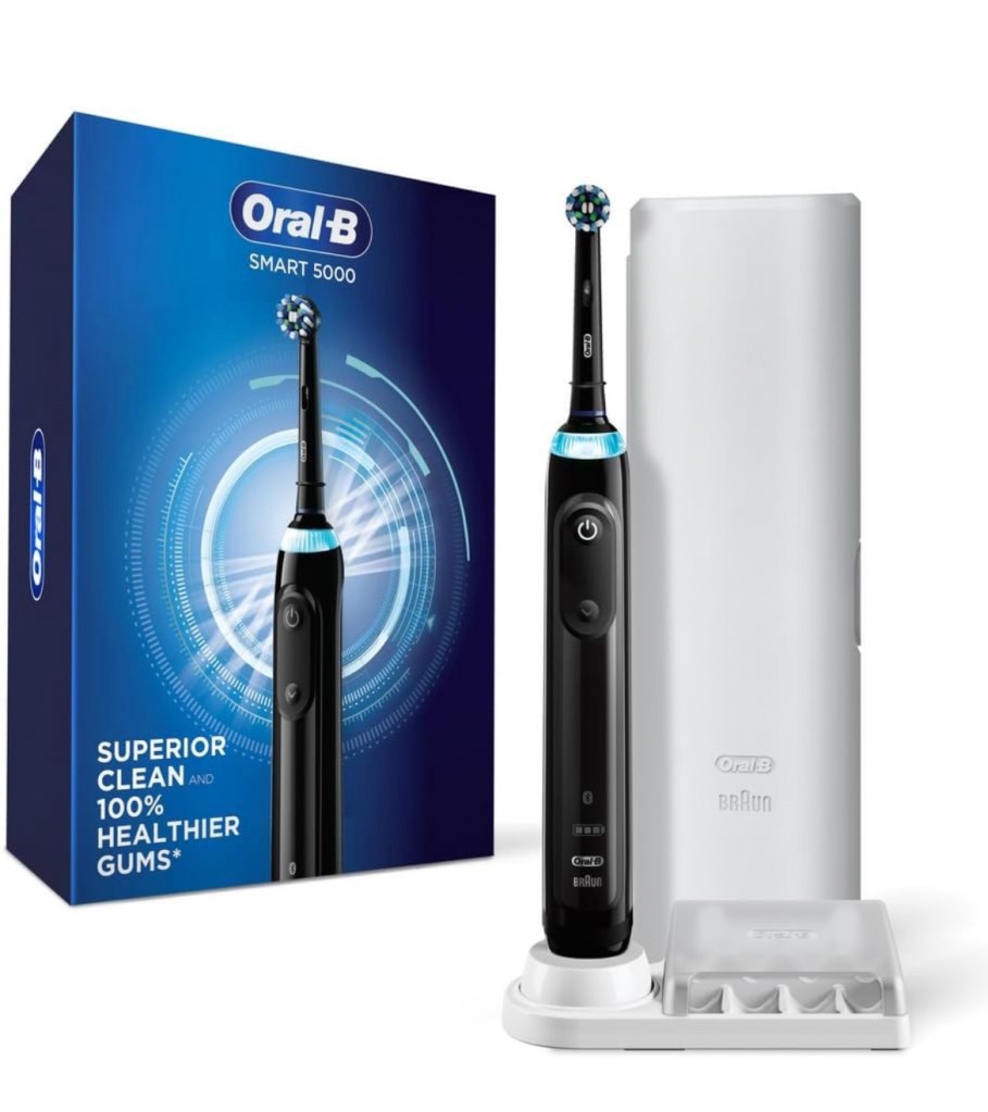 I just recently started to use an electric tooth brush. I feel like they really do the job. The Oral-B SMART 5000 Power Rechargeable Electric Toothbrush with Bluetooth Connectivity features a CrossAction brush head with bristles that reach deep between teeth for healthier gums.* Bluetooth communication allows the brush to connect with your smartphone to give you real-time feedback on your brushing habits and create a dental care journey based on your oral health goals. The Visible Pressure Sensor on the brush lights up to tell you when you apply too much pressure to your teeth and gums to help prevent harmful over-brushing. The toothbrush features 5 cleaning modes and a timer to help you brush for a dentist recommended 2 minutes. Oral-B SMART 5000 is compatible with a variety of replacement toothbrush heads and includes a convenient travel toothbrush holder. *vs a regular manual toothbrush Trust in the precision engineering of Braun and the dental expertise of Oral-B, the #1 brand used and recommended by dentists worldwide.