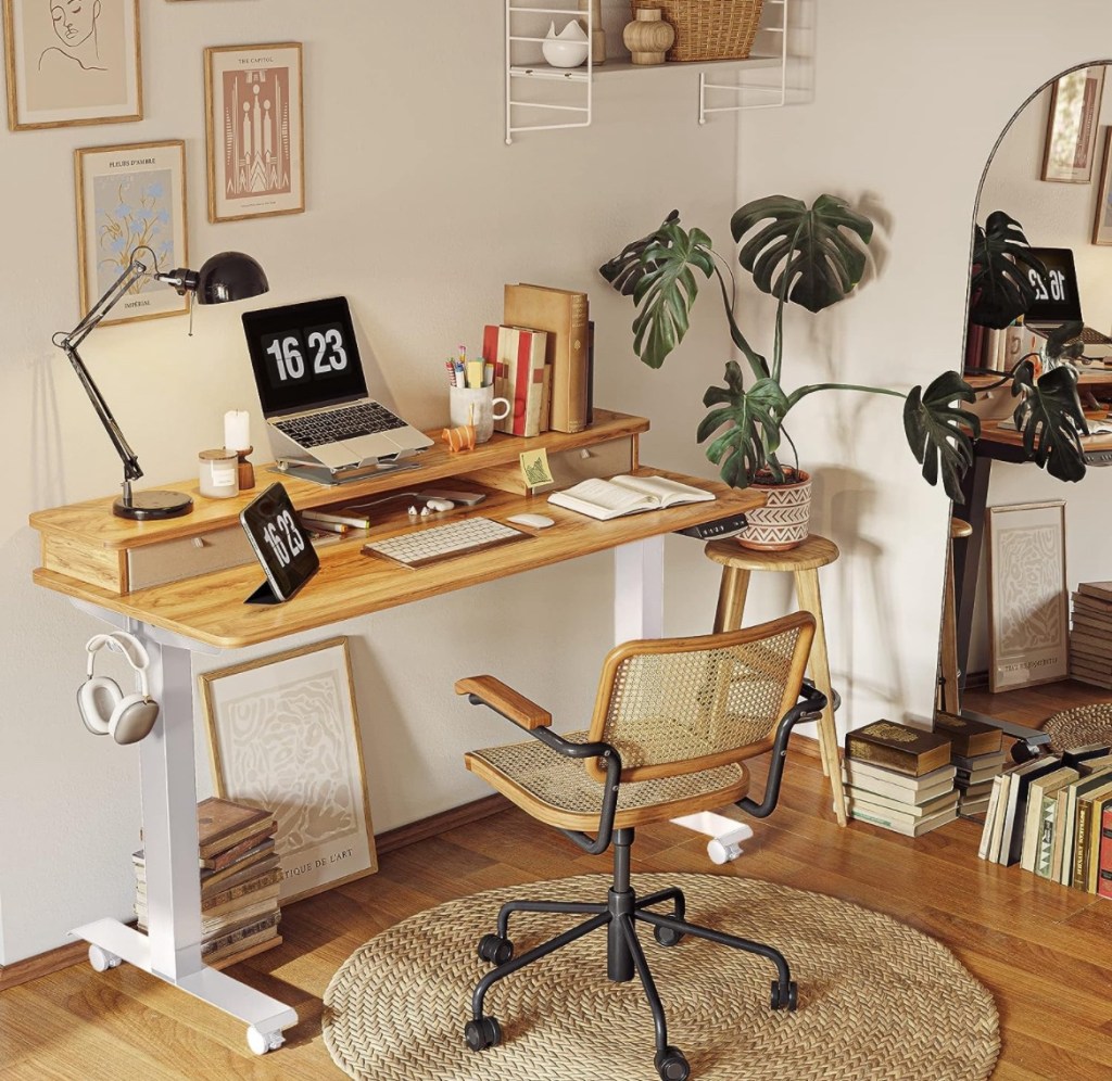 Let’s face it, being an entrepreneur, we spend several hours sitting down at our desk planning, creating, thinking. And all of that takes a toll on us if we don’t remember to get up every now and then to stretch and walk around a bit. When Covid came around we were all bound to our homes and we had to figure out the best ways to make the best of it. Whether we were working from home or our kids were home schooling, these height adjustable desks from FEZIBO came in very handy. It allowed us to get up and move and not be bound to our chairs all day. This desk is also available in other color combos to match your theme.