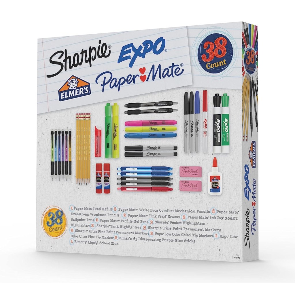 Supplies Kit, Highlighters, Mechanical Pencils, Glue Sticks, Erasers, Permanent Markers, Gel Pens, Pencils, Glue And More From Sharpie, Elmer’s, Paper Mate, & Expo, 38 Pieces